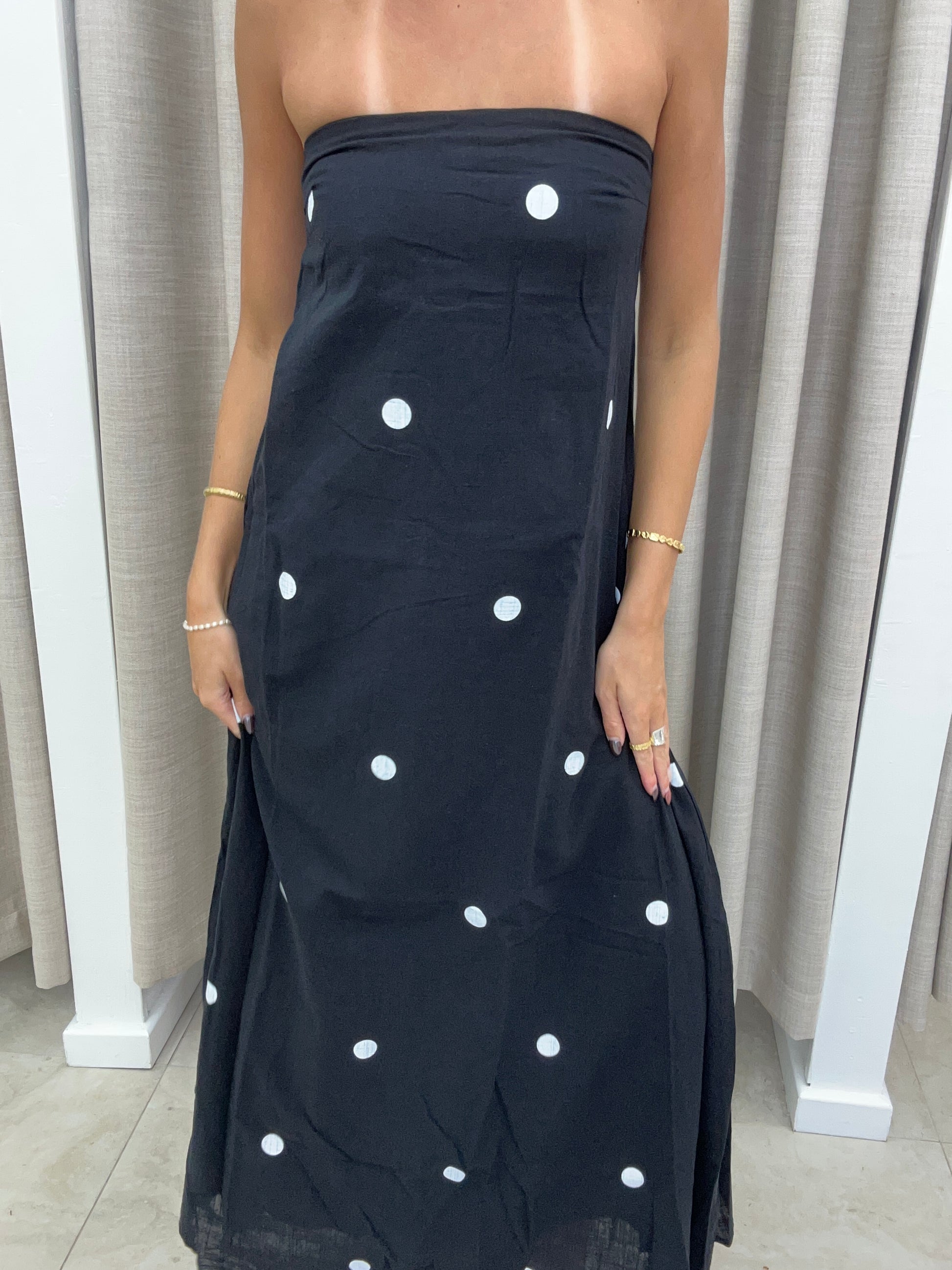 Black Polka Dot Strapless Maxi Cotton - By Frankie