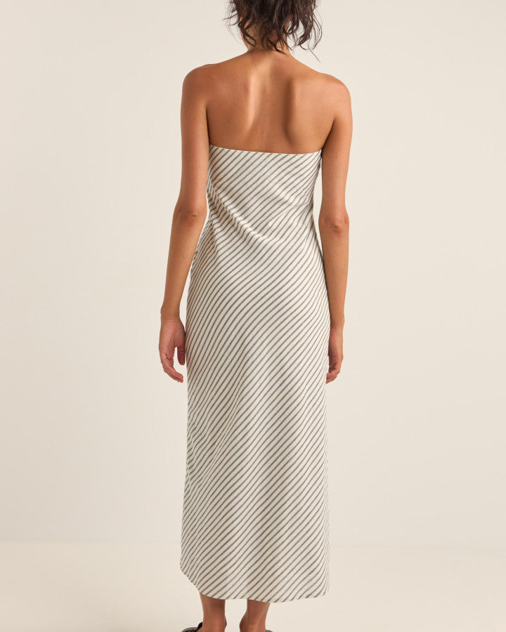 DALIA BIAS MIDI DRESS NAVY STRIPE