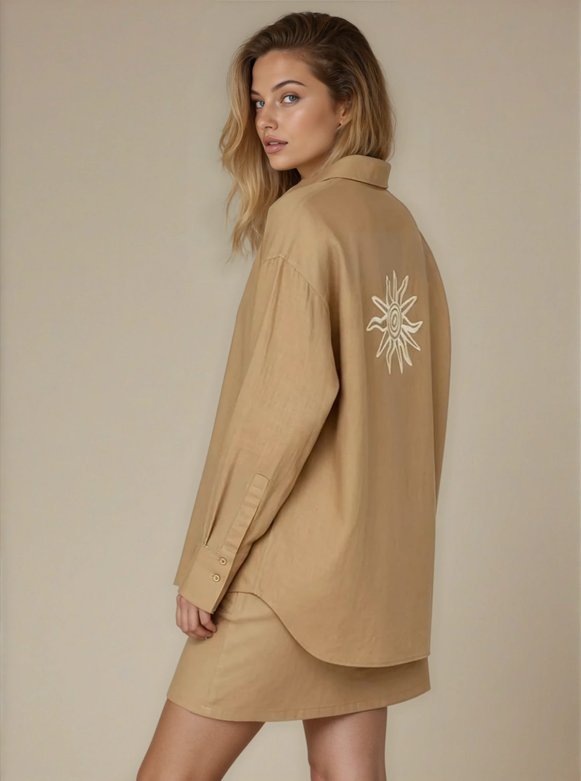 The Nacida Shirt is where effortless style meets artisan craftsmanship. Crafted from a breathable cotton/linen blend and designed with an oversized, relaxed silhouette, this is the shirt that anchors your coastal wardrobe—whether you're layering it over swimwear or styling it for sun-soaked days that stretch into evening.