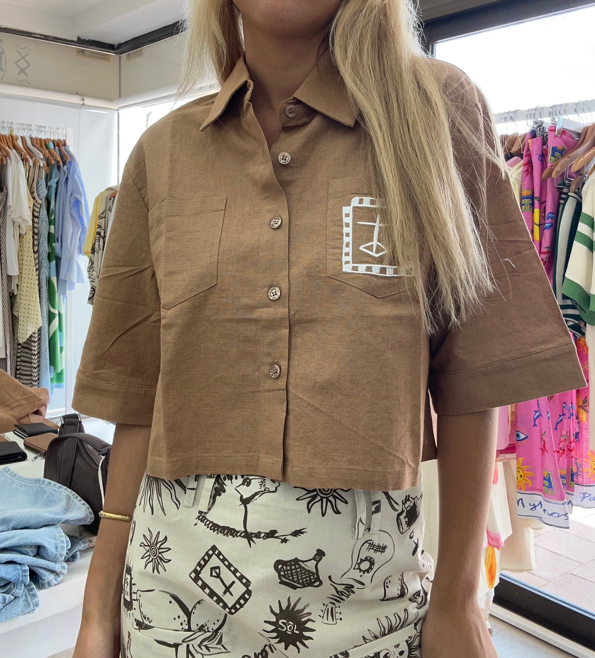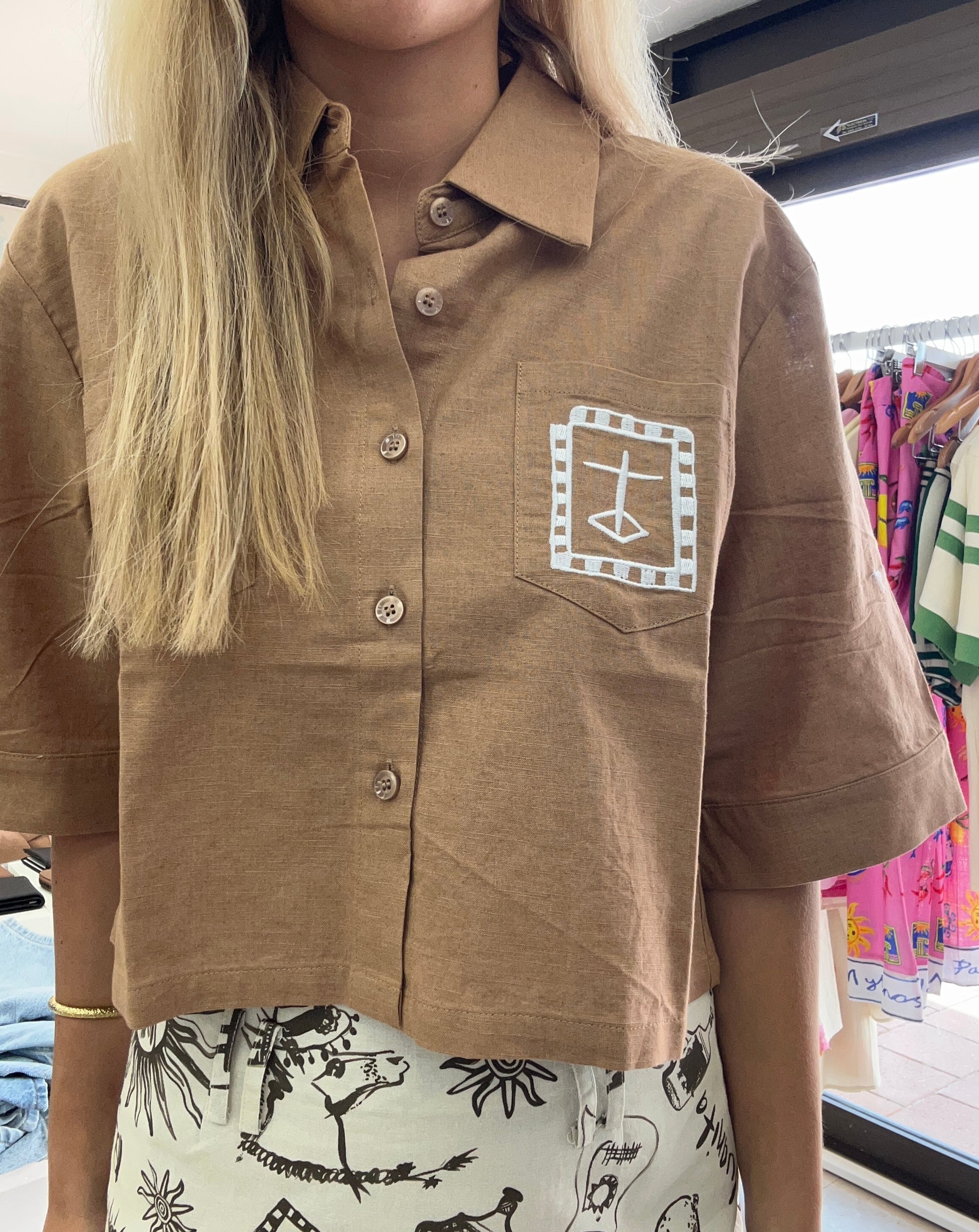 The Nacida Top is where comfort meets effortless style. Crafted from a luxurious cotton/linen blend, this waist-crop top offers a relaxed, breathable fit perfect for warmer days. Its oversized silhouette provides a laid-back vibe.