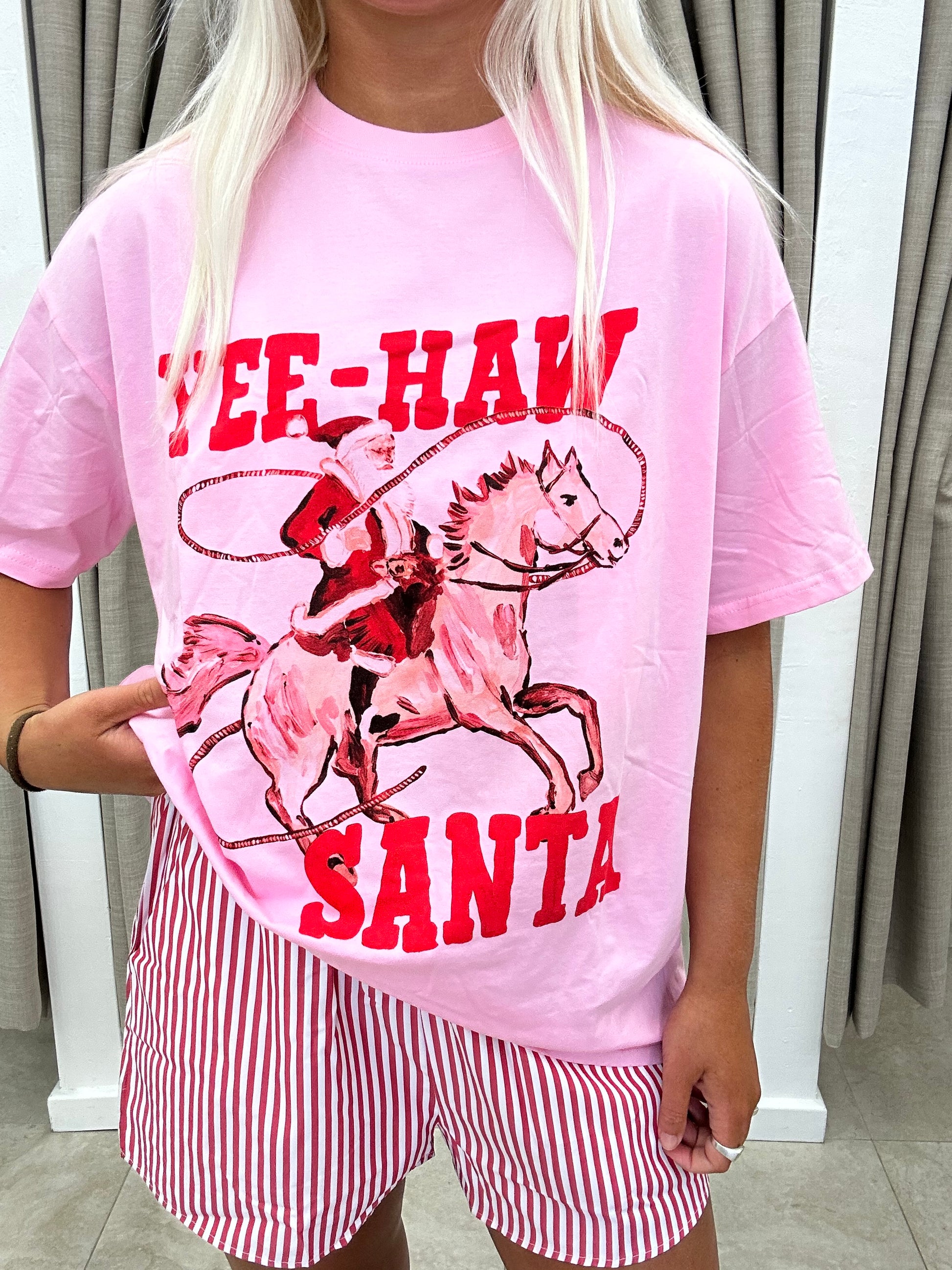 Pink Yeehaw Santa Short Set Cotton - Shorts By Frankie