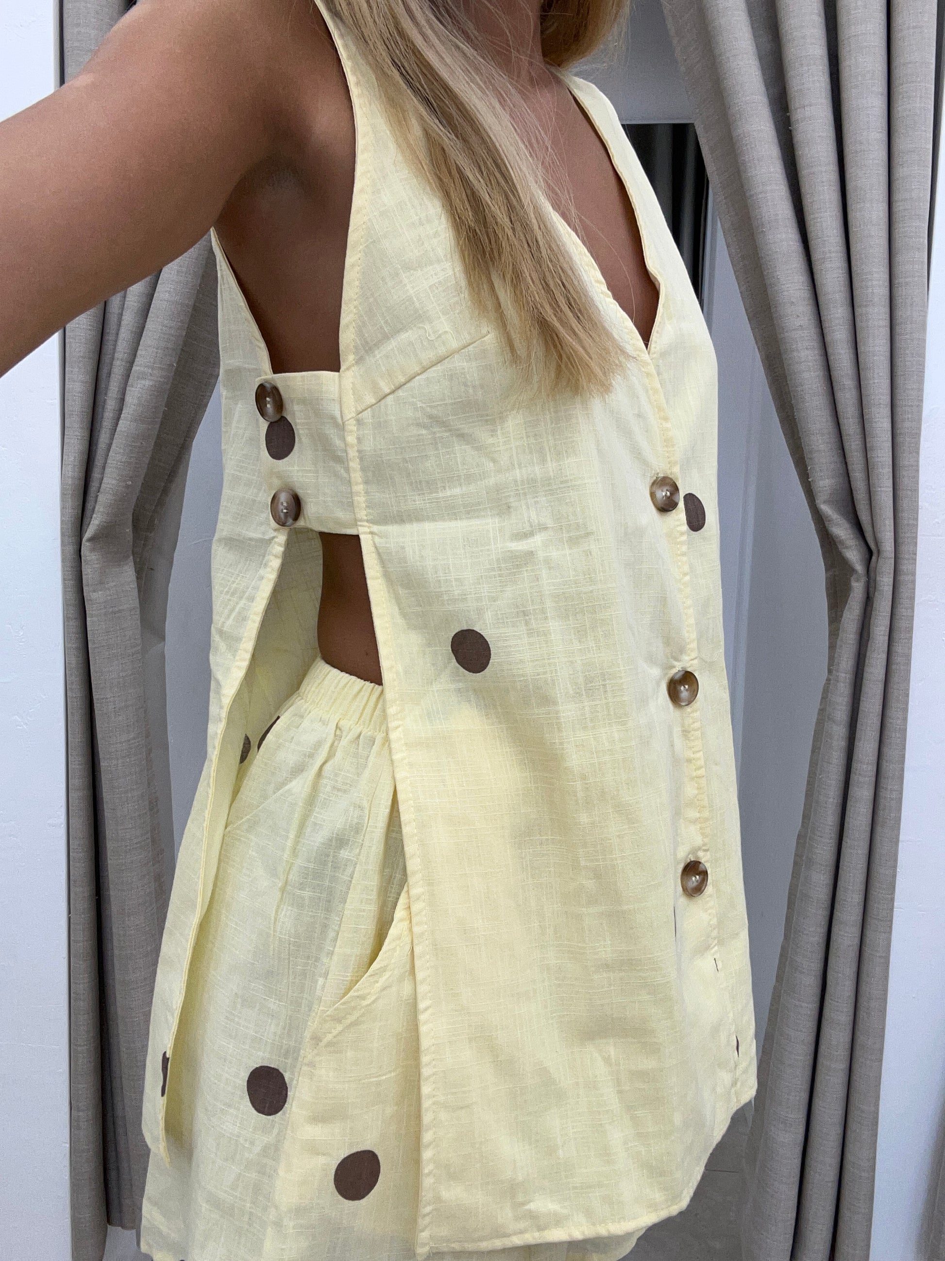 Yellow Choc Polka Dot Panel Set Cotton - Shorts By Frankie