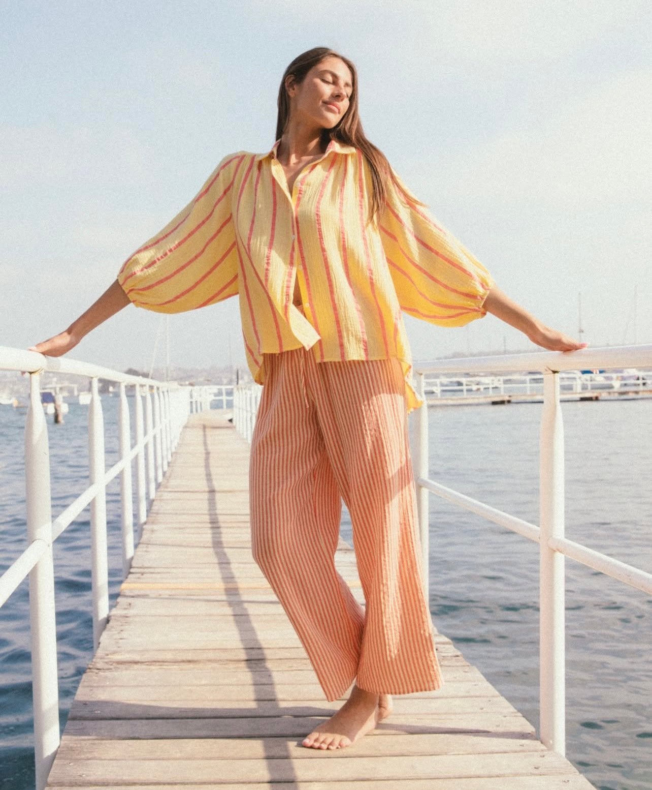 Yellow & Coral Matching Stripe Pant